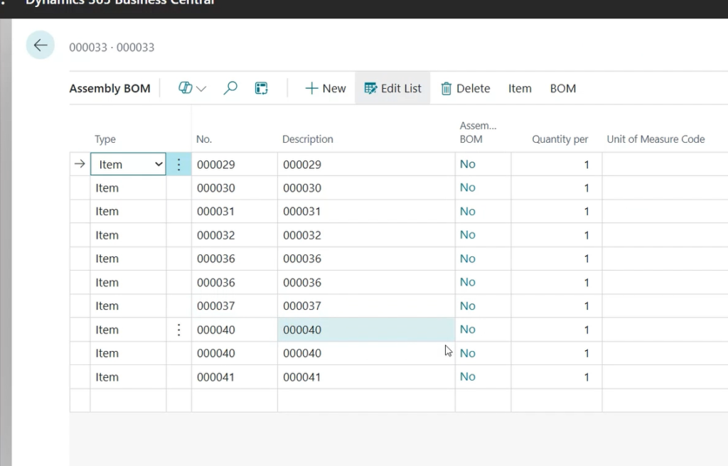 - Go and check whether the bill of materials is transferred to Business Central.