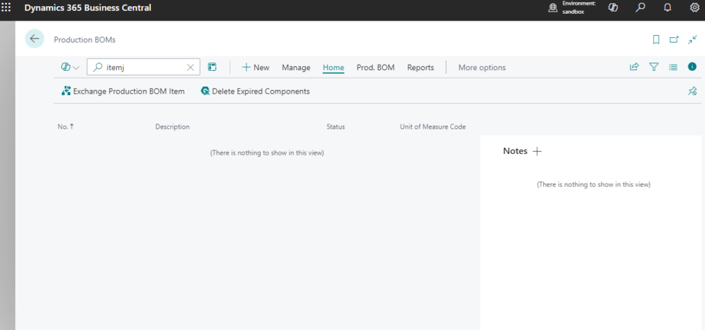 • Go and check whether Bill of Materials are there or not in Business Central.